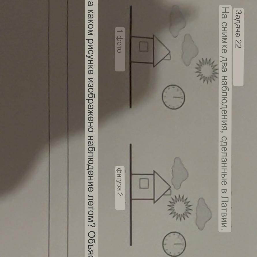 Ответ: Это 1 рисунок. Потому что на часах 12 часов дня, а летом дни долгие а ночи короткие, то есть солнце садиться позже чем остальные времена года.