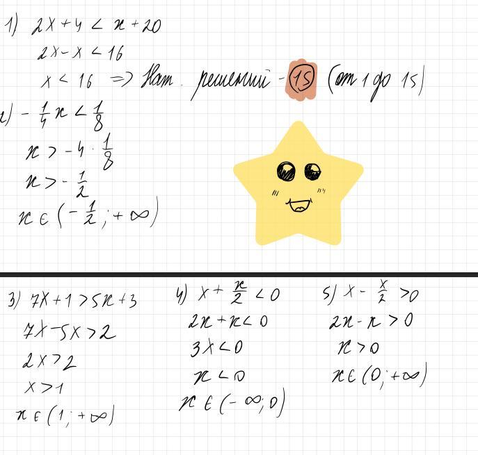1. Сколько натуральных решений имеет неравенство 2x +4 < x+20 ?