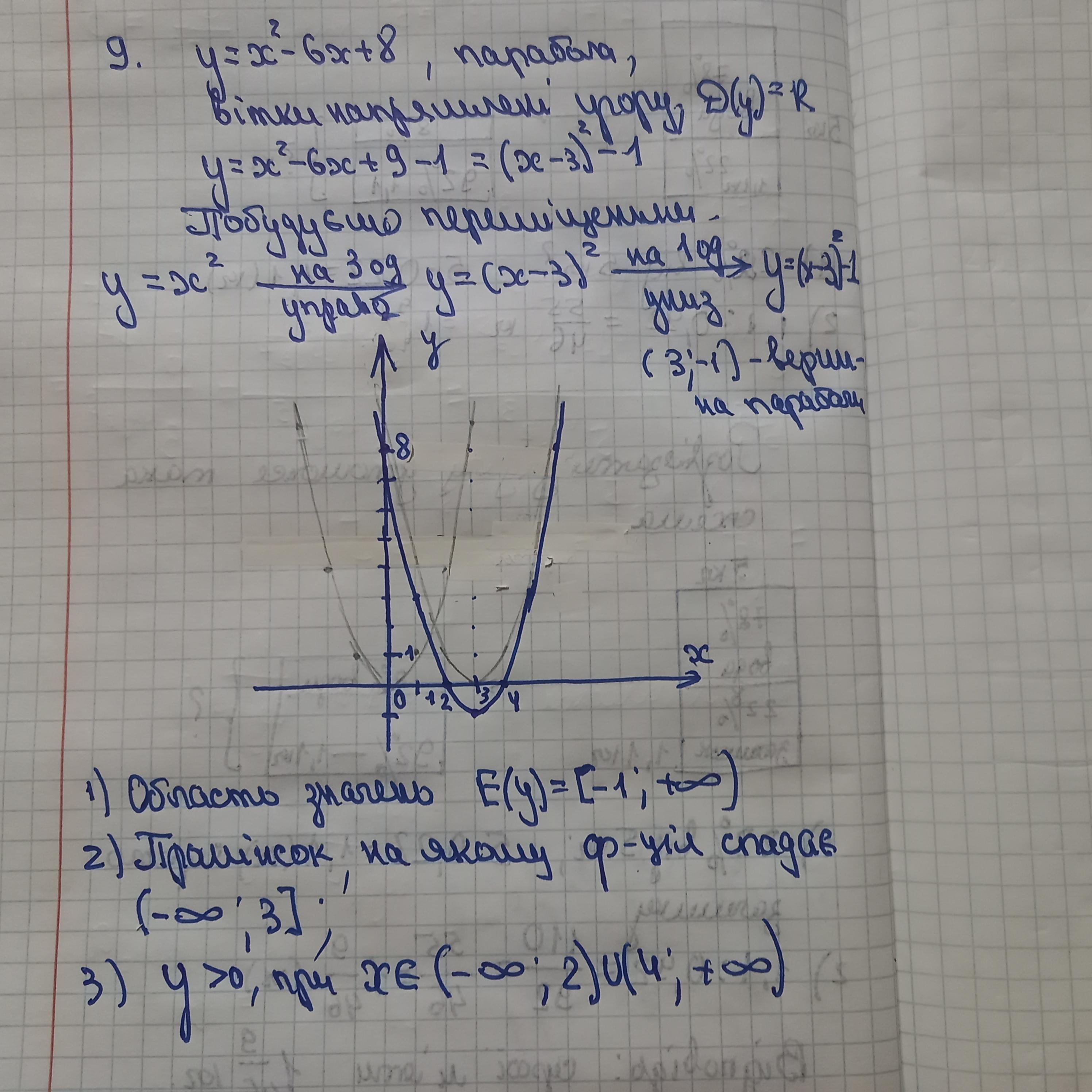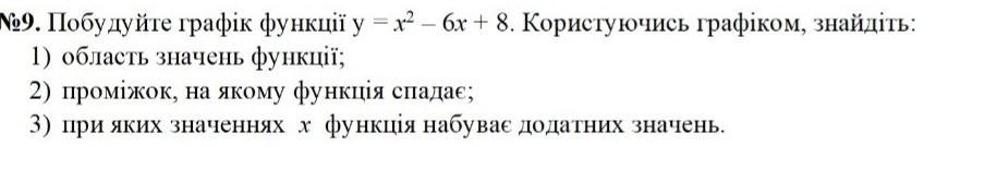 9. Побудуйте графік функції у = x2 - 6х + 8.