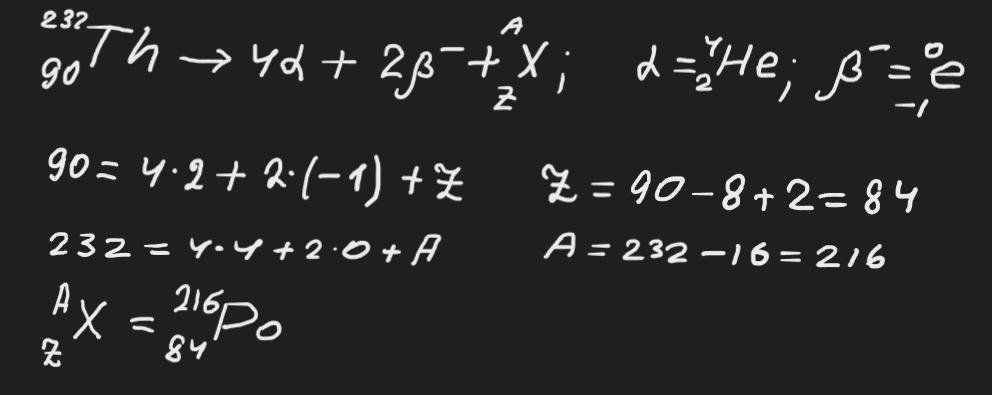 Какой изотоп образуется из 232/90Th после четырех альфа - распадов и двух бета - распадов?