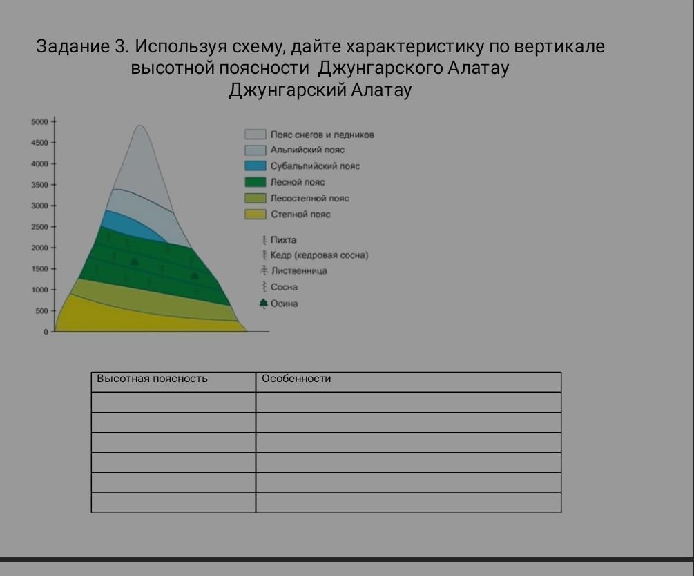 - Используя схему, ниже дана характеристика по вертикали высотной поясности Джунгарского Алатау