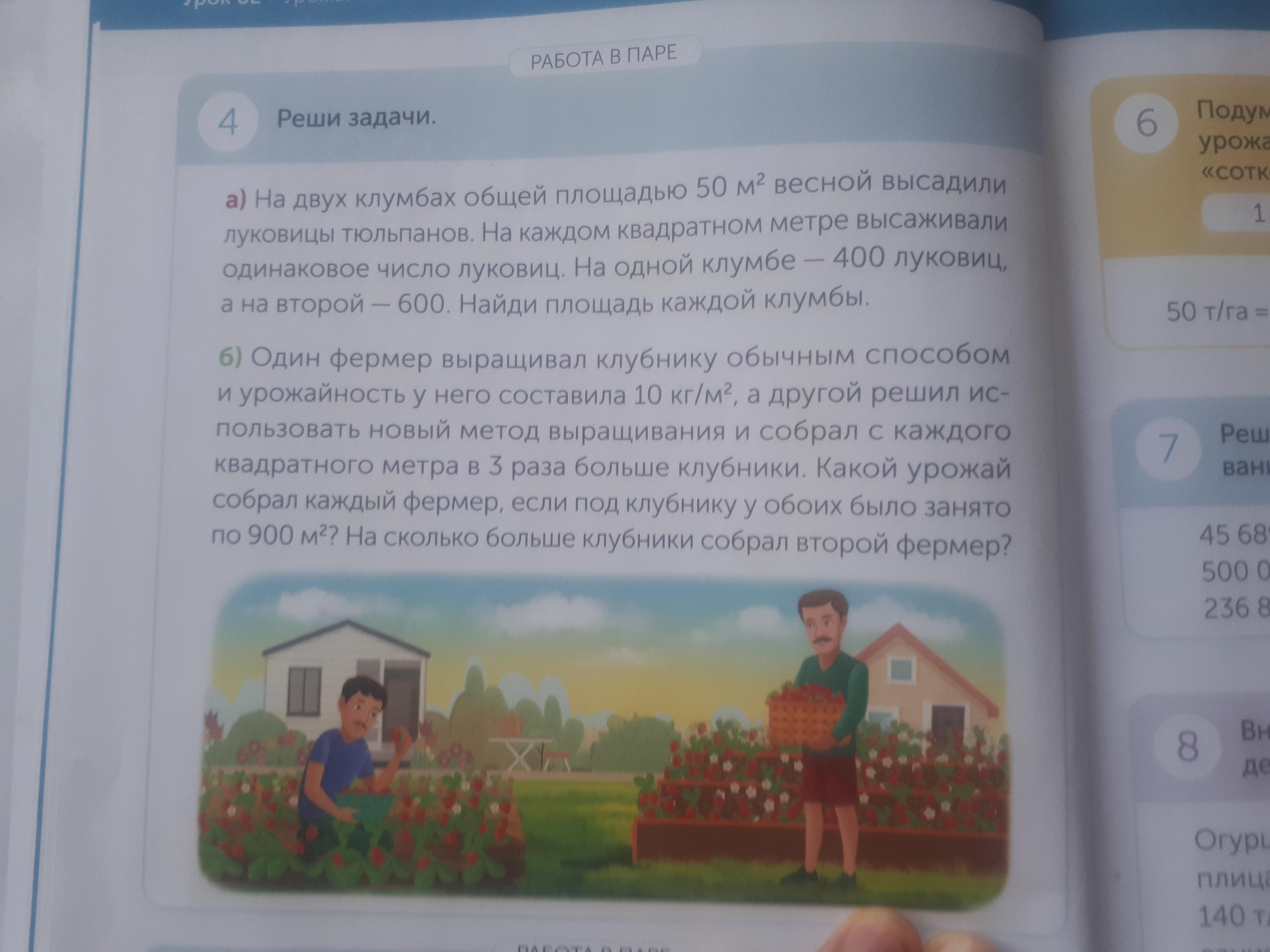 Найдем урожайность, полученную вторым фермером:10 * 3 = 30кг/м².Первый фермер собрал:900 * 10 = 9000кг.А второй собрал:900 * 30= 27000кг.Разница в урожае составит:27000 - 9000 = 16000 кг.Ответ: второй фермер собрал на 16000кг больше чем первый.