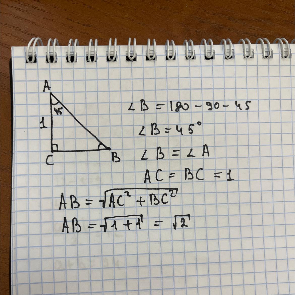Тікбұрышты Теңбүйірлі үшбұрыш шығады, сосын Пифагор теоремасы