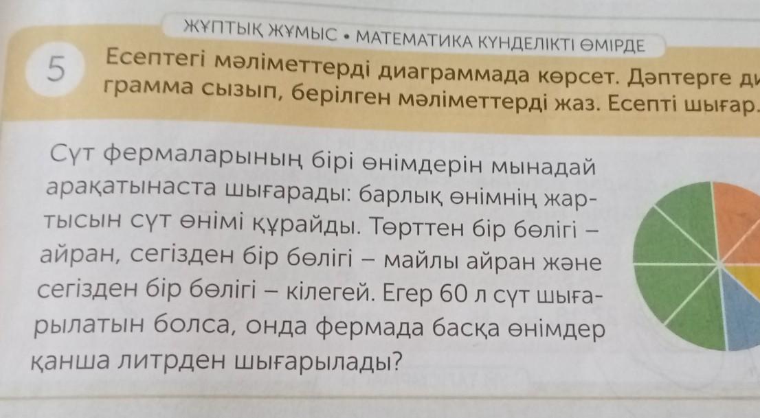 Есептегі мәліметтерді диаграммада көрсет.Дәптерге диаграмма сызып берілген мәліметтерді жаз. Есепті шығар.