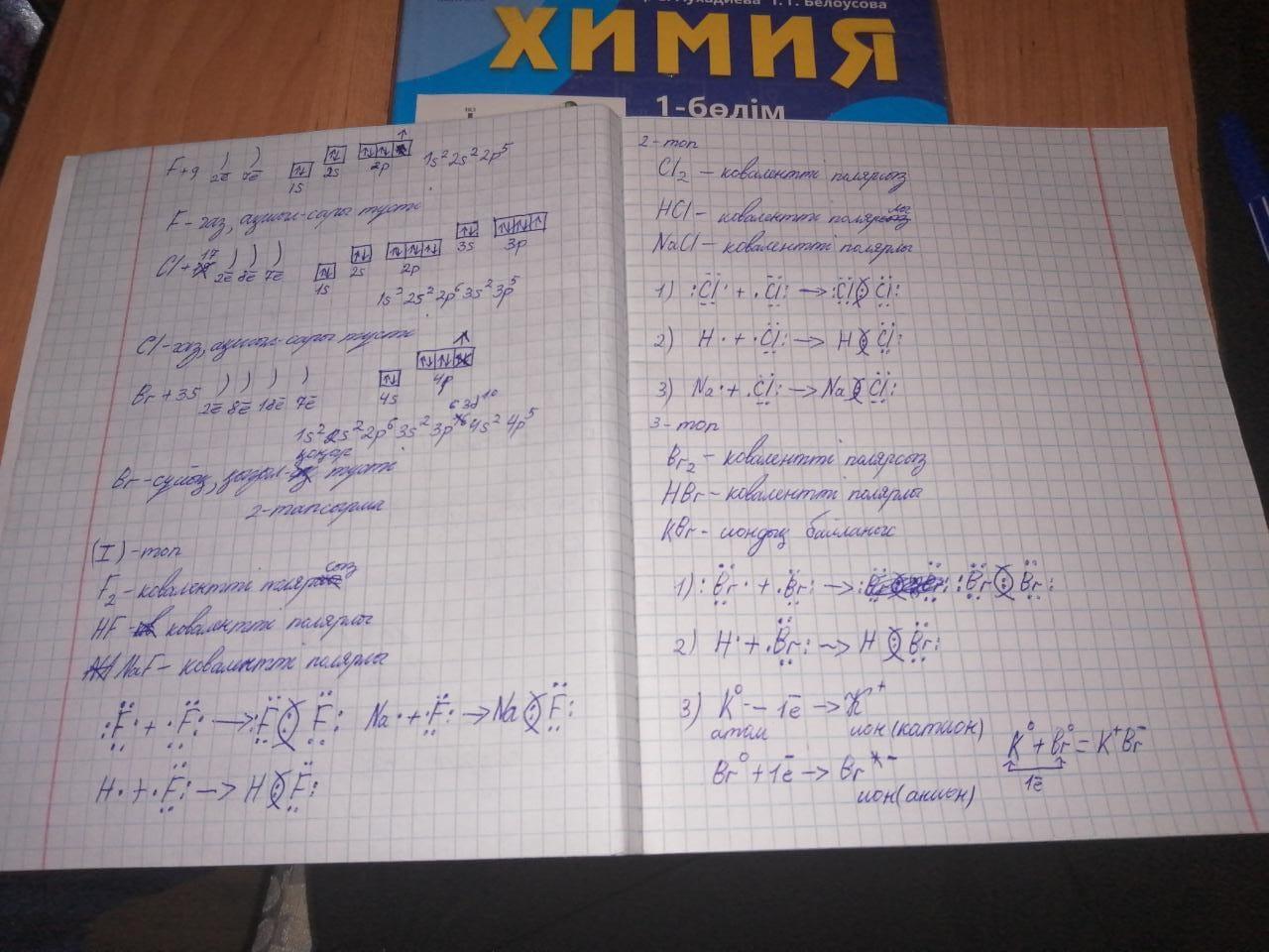 1-тапсырма Берілген F2, Cl2, Br2 элементтерінің электрондық формулаларын құрастыру.