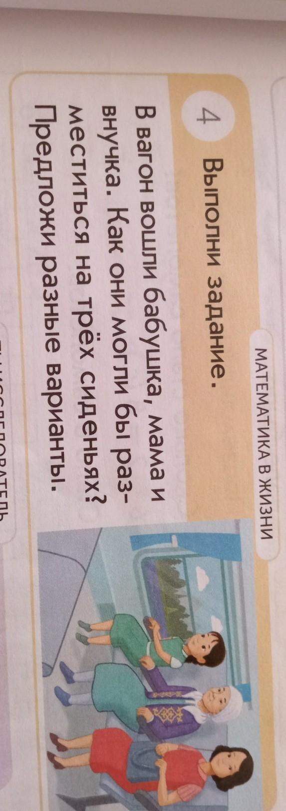 вагон вагон вошли бабушка мама и внучка как они могли бы разместиться на трёх сидений предложи разные варианты.