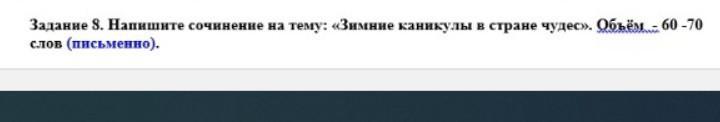 дело было зимой. 30 декабря, наконец долгожданные каникулы. С самого утра мы с мамой начали готовиться к новому году. Ближе к вечеру я решила отдохнуть, и пошла спать. Мне приснился заяц, который позвал меня за собой. Когда я проснулась я очутилась в необычно красивой и незнакомой мне стране. И увидела того самого зайца. Он сказал мне, что отправил меня в страну чудес, на зимние каникулы. Я веселилась, играла с животными, лепила снеговиков и здорово проводила время. Но, к сожалению время шло к концу каникул. Ко мне припрыгал мой заяц, и отправил вновь домой, в (твой город). После этого случая я верю, что новогоднее чудо существует