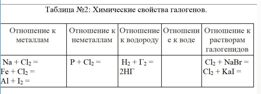 - Cl2+ 2KI =2KCl+I2 ; Cl2+2NaBr= 2NaCl + Br2 (стоящий выше в периодической таблице элемент вытесняет нижестоящий из галогеноводородных кислот и их солей)