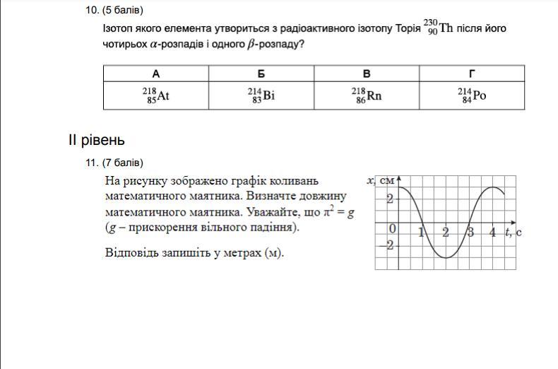 На рисунку зображено графік коливань математичного маятника. Визначте довжину математичного маятника. Уважайте, що п² = g (g- прискорення вільного падіння).