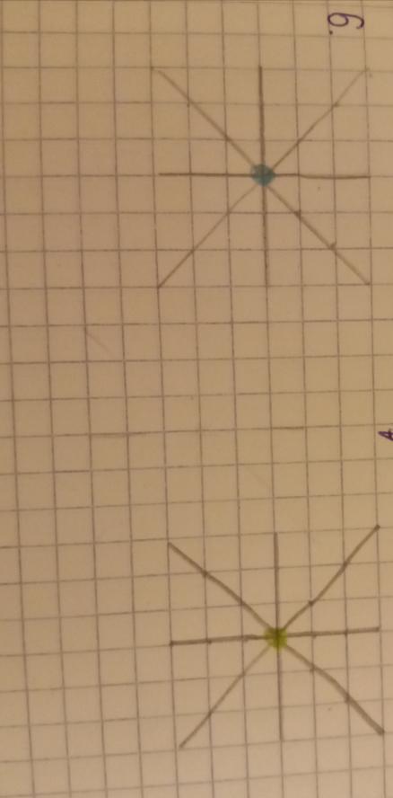 6. На пересечении линий тетради отметь по од- ной точке зелёного и синего цвета. Проведи прямые через точку зелёного цвета. Сколько прямых можно провести? Проведи лучи с началом в точке синего цвета. Сколько лучей можно провести? O O