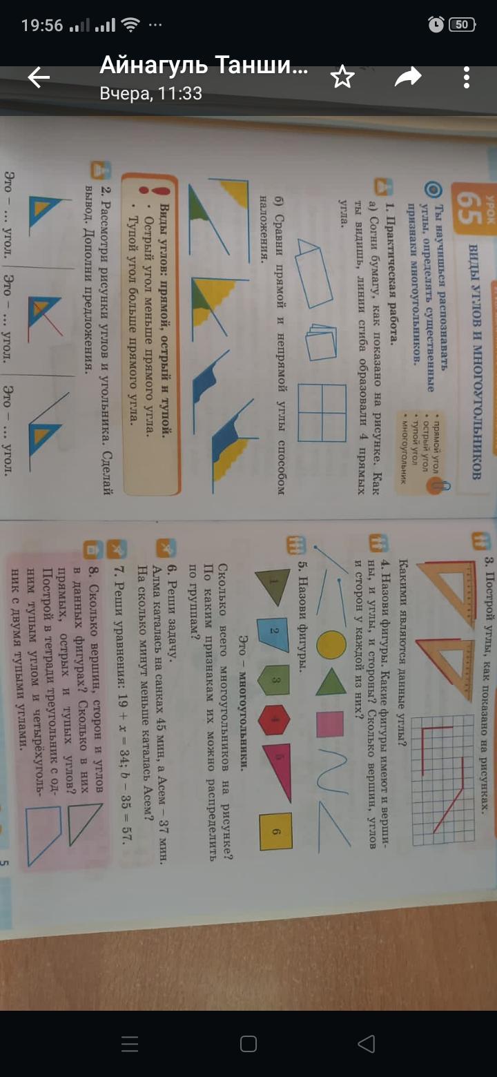 У синего 4 стороны, 4 вершины и 4 угла. 2 прямых угла, 1 тупой и один острый