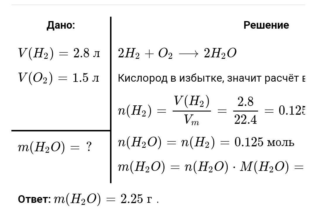 При взрыве смеси кислорода и избытка водорода определенного объема (н.ч.) образовалось 45 г воды. Насколько он уменьшился? объем смеси (л, н.л.) после доведения до исходных условий.