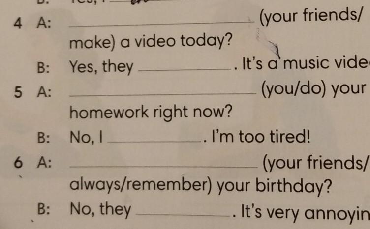 4 Complete the questions with the Present Simple or Present Continuous form of the verbs in brackets. Then complete the short answers.