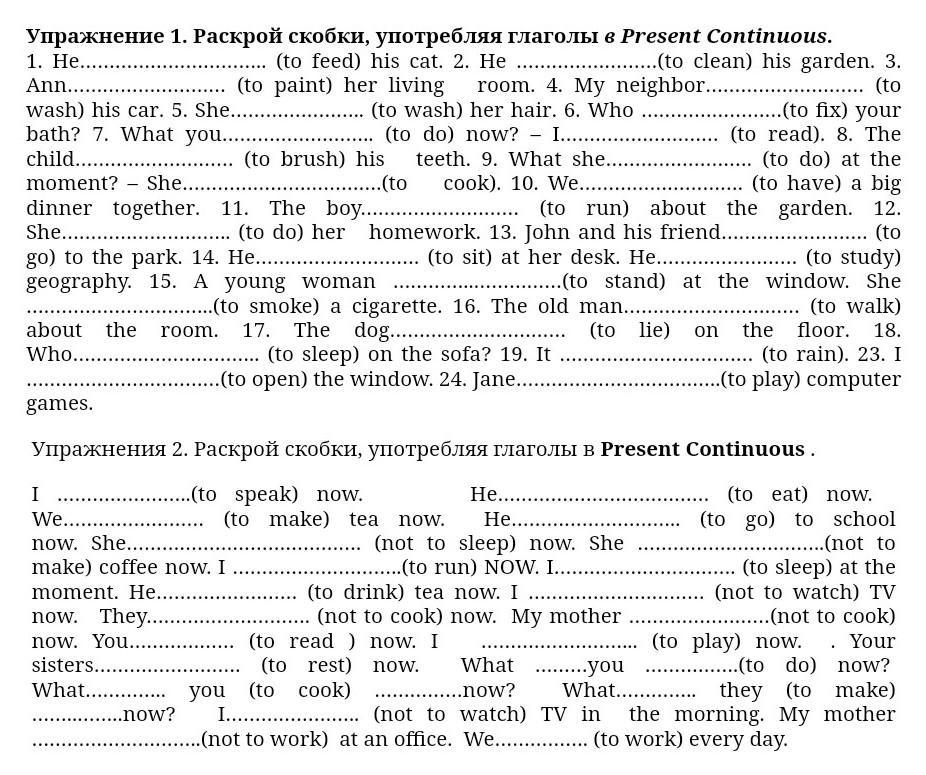 Добавление к глаголу окончания -ing — общее правило. Однако присоединение окончания может трансформировать основу некоторых глаголов при образовании Present Continuous.