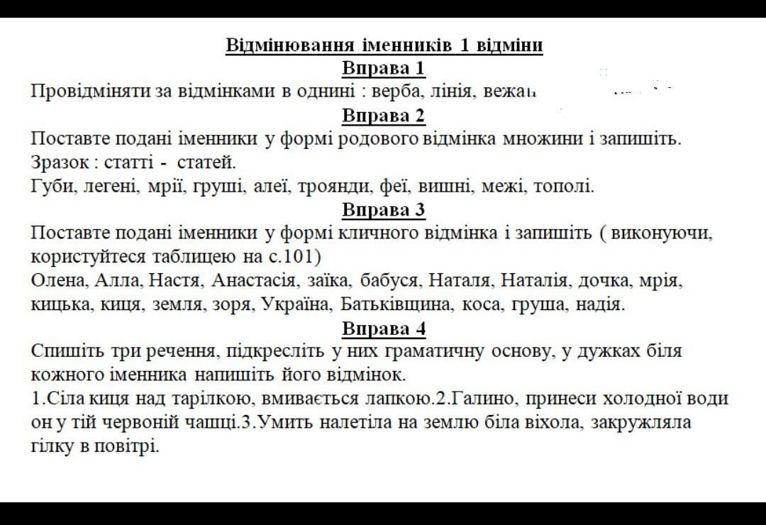 Олена - Олено; Алла - Алло; Настя - Насте; Анастасія - Анастасіє; заїка - заїко; бабуся - бабусю; Наталя - Наталю; Наталія - Наталію; дочка - дочко; мрія - мріє; кицька - кицько; киця - кицю; земля - земле; зоря - зоре; Україна - Україно; Батьківщина - Батьківщино; коса - коса; груша - груше; надія - надіє.