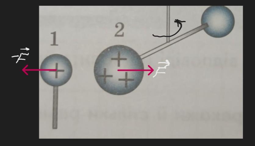 Кульку 1 піднесли до кульки 2, зарядженої та закріпленої У якому напрямку після цього почав обертатися стрижень?