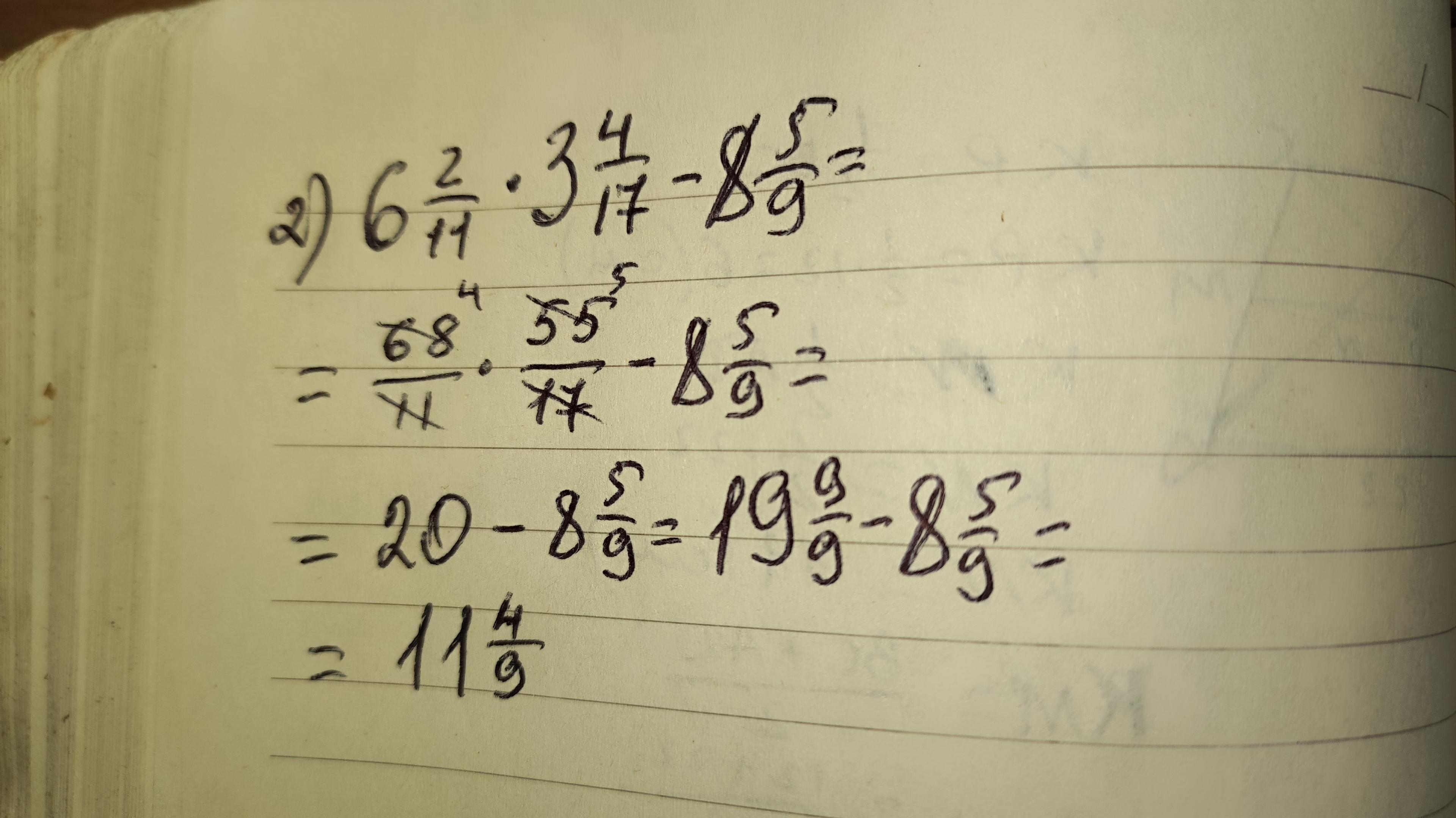 6 2/11 * 3 4/17 - 8 5/9 решите полность не ответ а полностью пж дам 100 балов или 90 не знаю крч