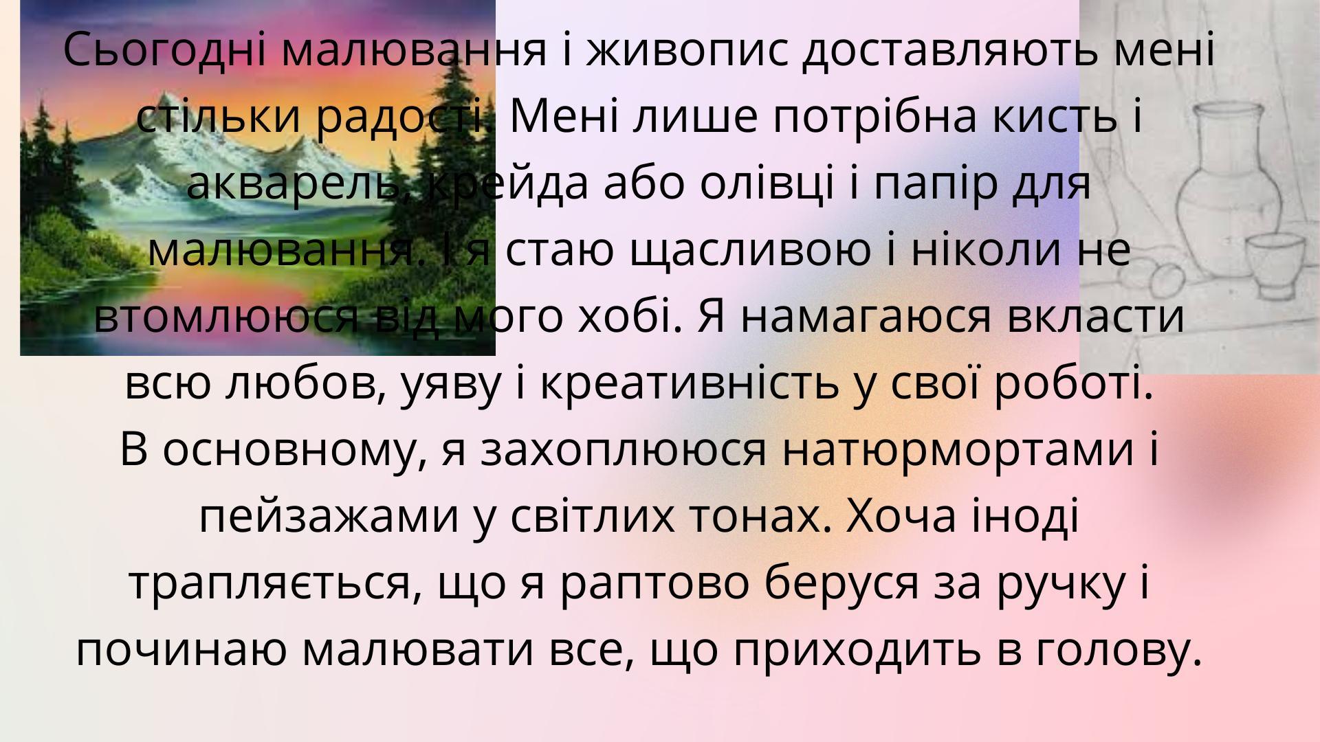 Домашня робота: Спроектувати та розробити презентацію про своє захоплення, або будь яку довільну тему (до 100 слів). Обміркуйте, яка кількість слайдів вам потрібна для супроводу виступу (не забудьте додати до основних три традиційні слайди: Титульний, Слайд змісту, Завершальний).++++++++++++