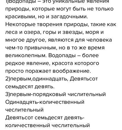 Прочитай текст Как ты думаешь почему водопад называют уникальным явлением природы Найди в тексте имена числительные определите их разряд Измени количественные числительные по падежам