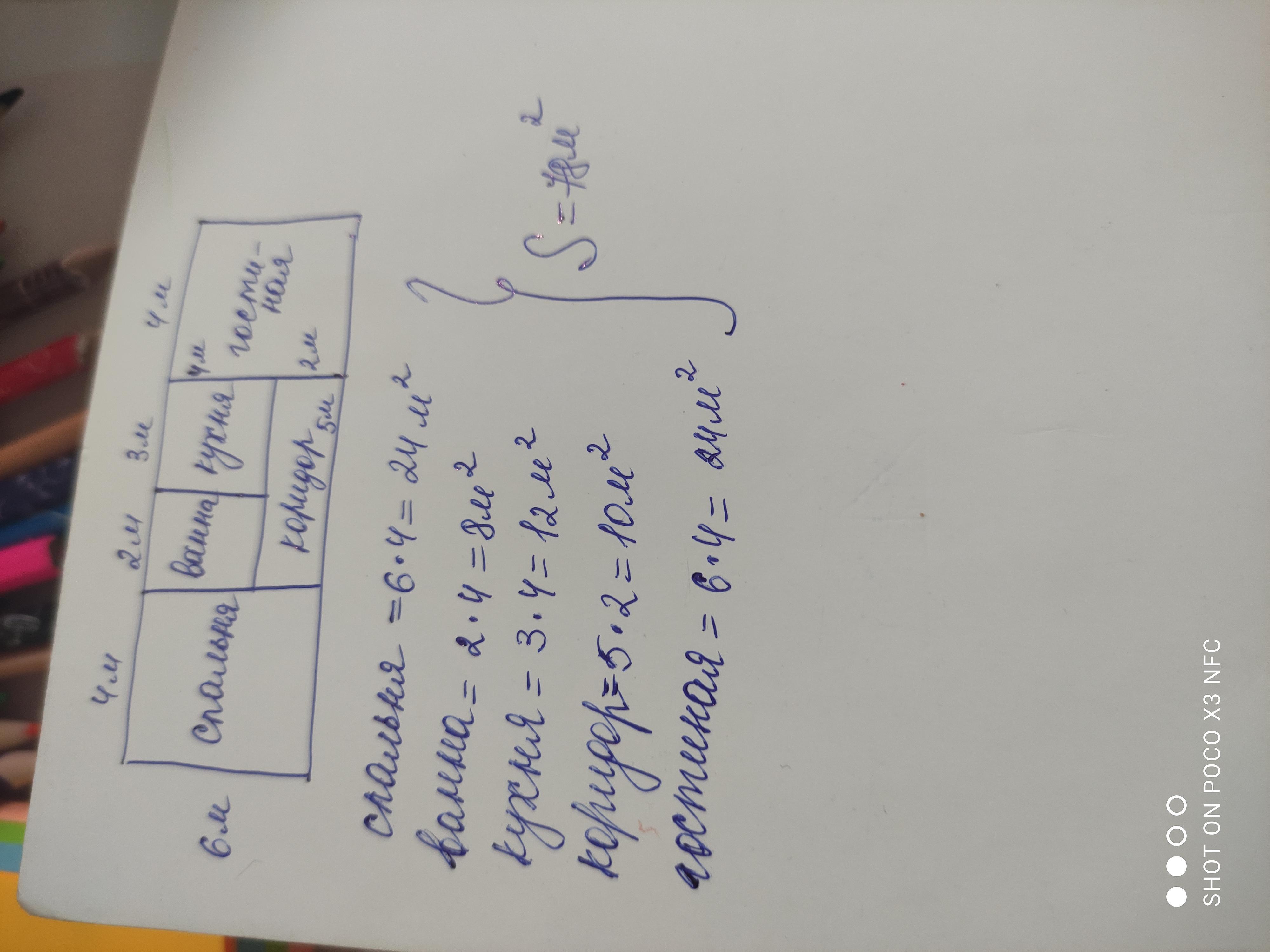 669.На рис 4. изображен план квартиры.Найдите площадь каждой комнаты и площадь всей квартиры