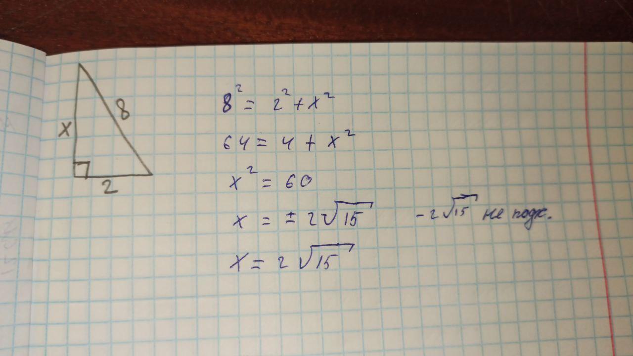 В треугольнике ABC 90 ,AC=8, AB=2 BC=x найдите x