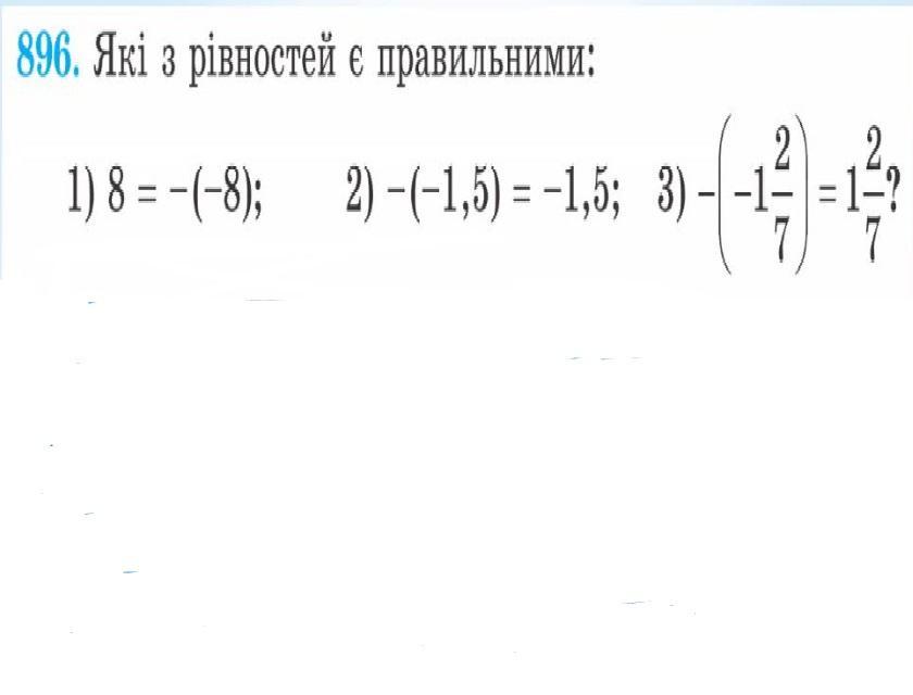Правильними є рівності : 1) 8 = - (- 8 ) і 3) - (- 1 2/7 ) = 1 2/7 .