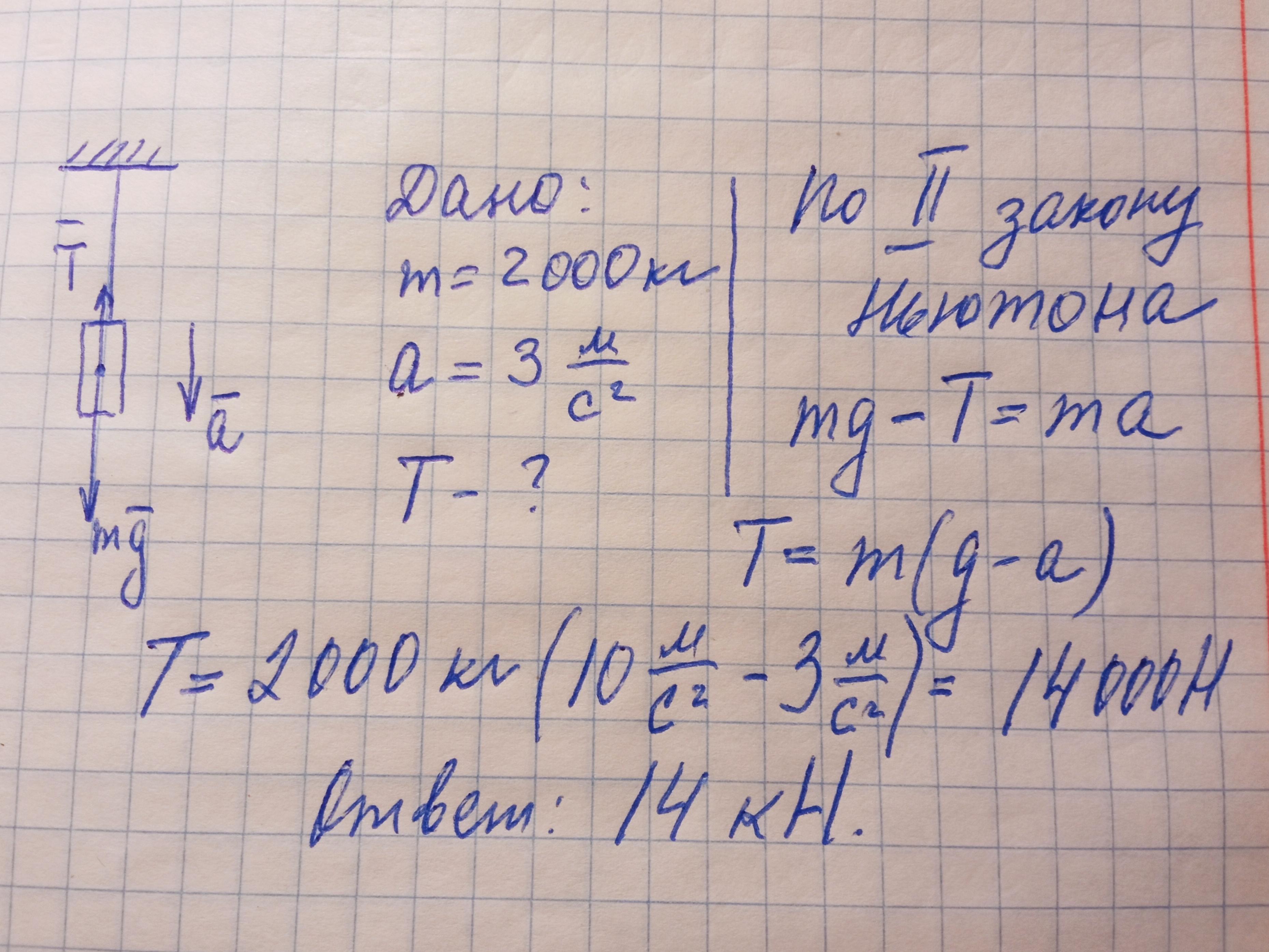 Вантаж масою 2 т, який підвішений на сталевому тросі, опускається