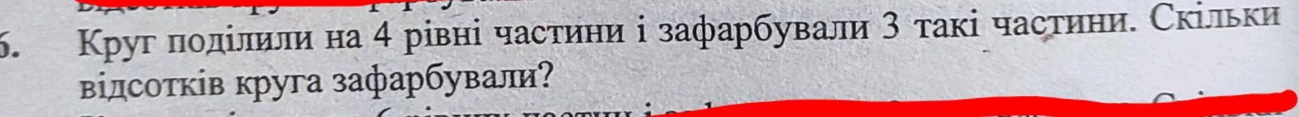 Пошаговое объяснение: нам сказано, що було намальовано коло, яке було поділено на 4 частини. 3 частини зафарбовано. Це виходить що 3/4 зафарвлена.