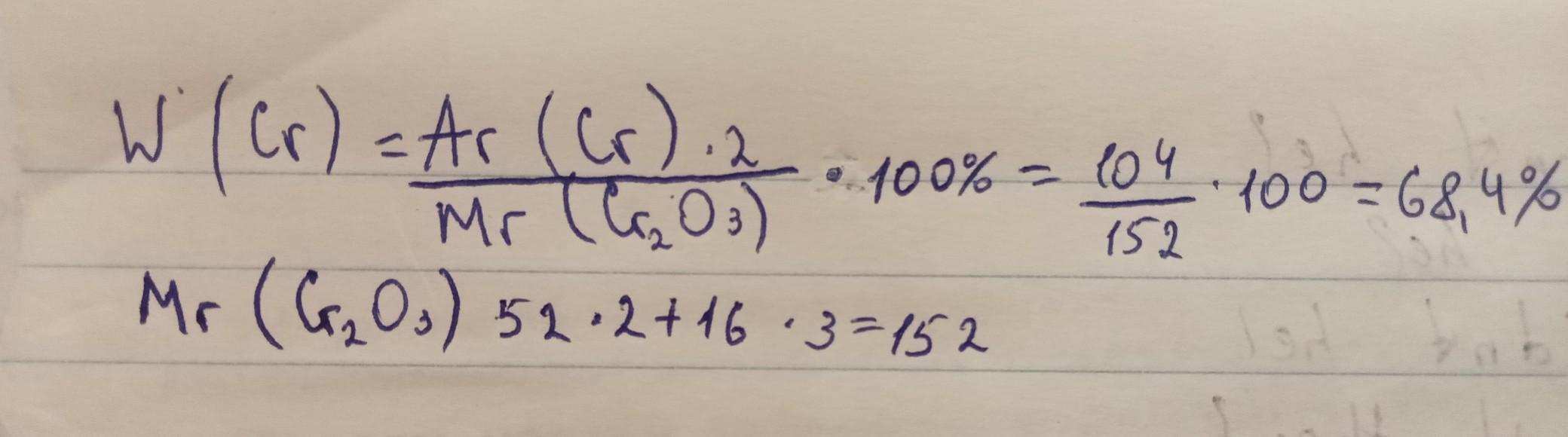 W(Cr) = m(Cr) : m(CrxOy) × 100% = 13 : 25 × 100% = 52 %