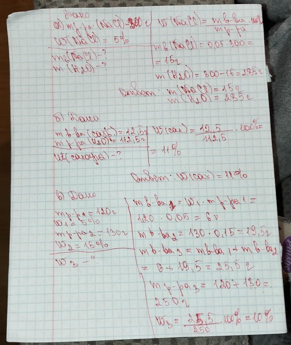 а)Сколько грамм соли и воды нужно для приготовления 300 г 5% раствора?