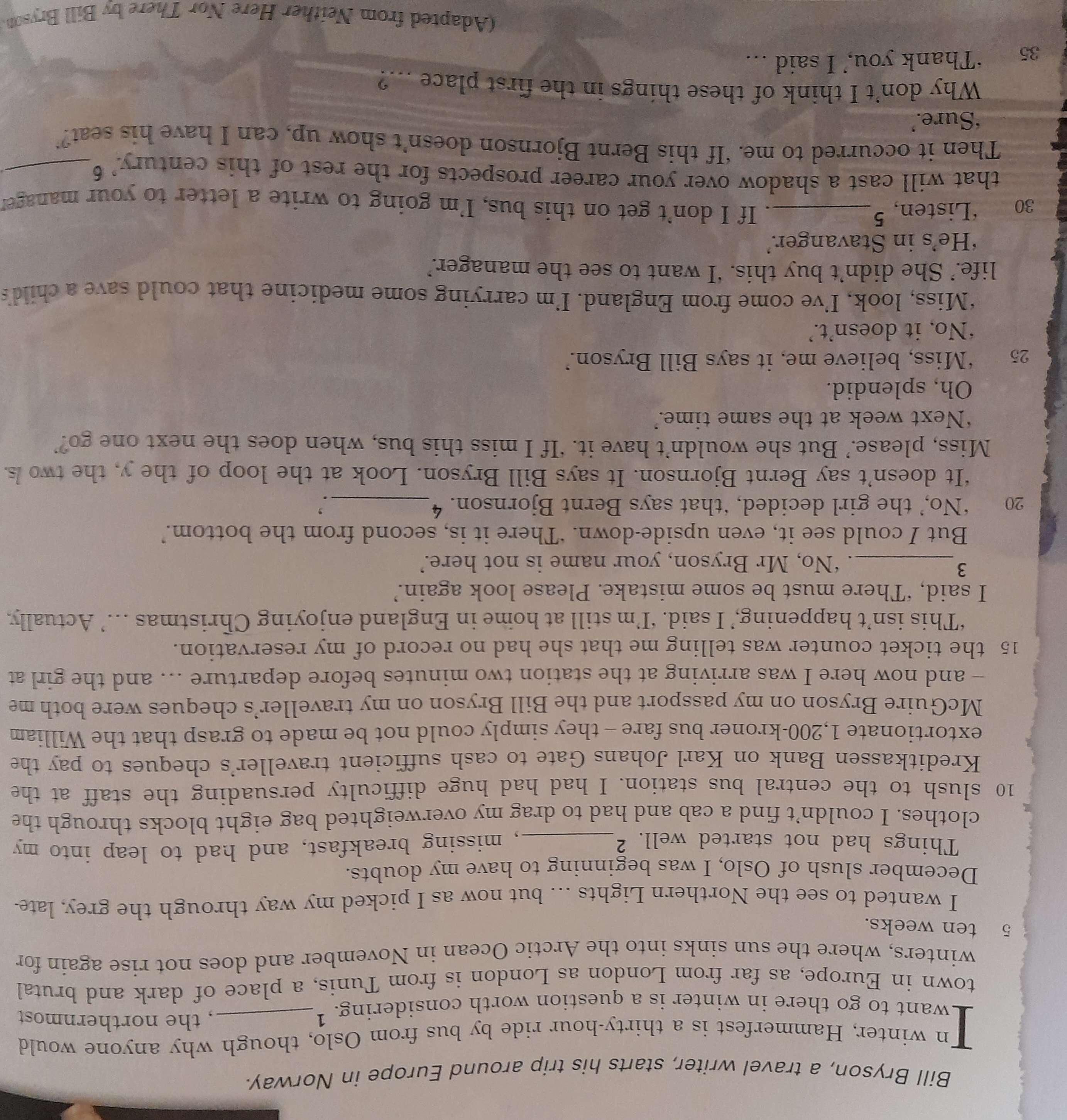3 Why did the bank staff not want to cash his traveller's cheques at first?