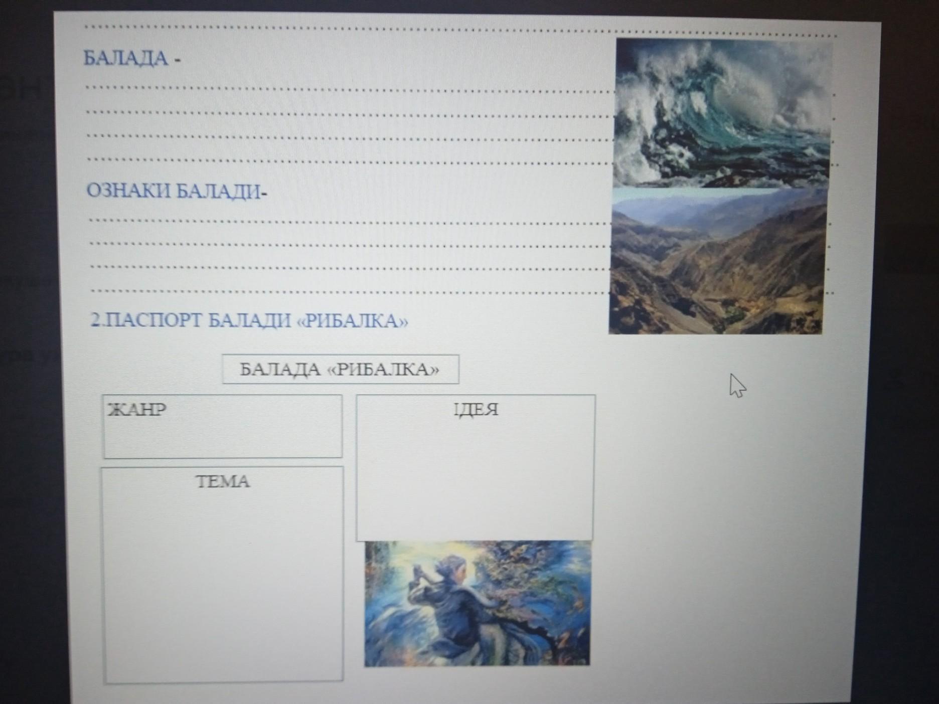Тема: Розповідь про те, як молодий Рибалка за наполегливими вмовляннями Дівчини-русалки пірнув у воду, намагаючись там продовжити своє життя.
