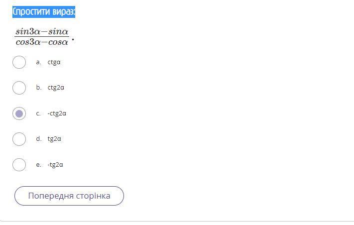 кутів 3α і α . Одержимо - сtg2α , тобто третю відповідь .
