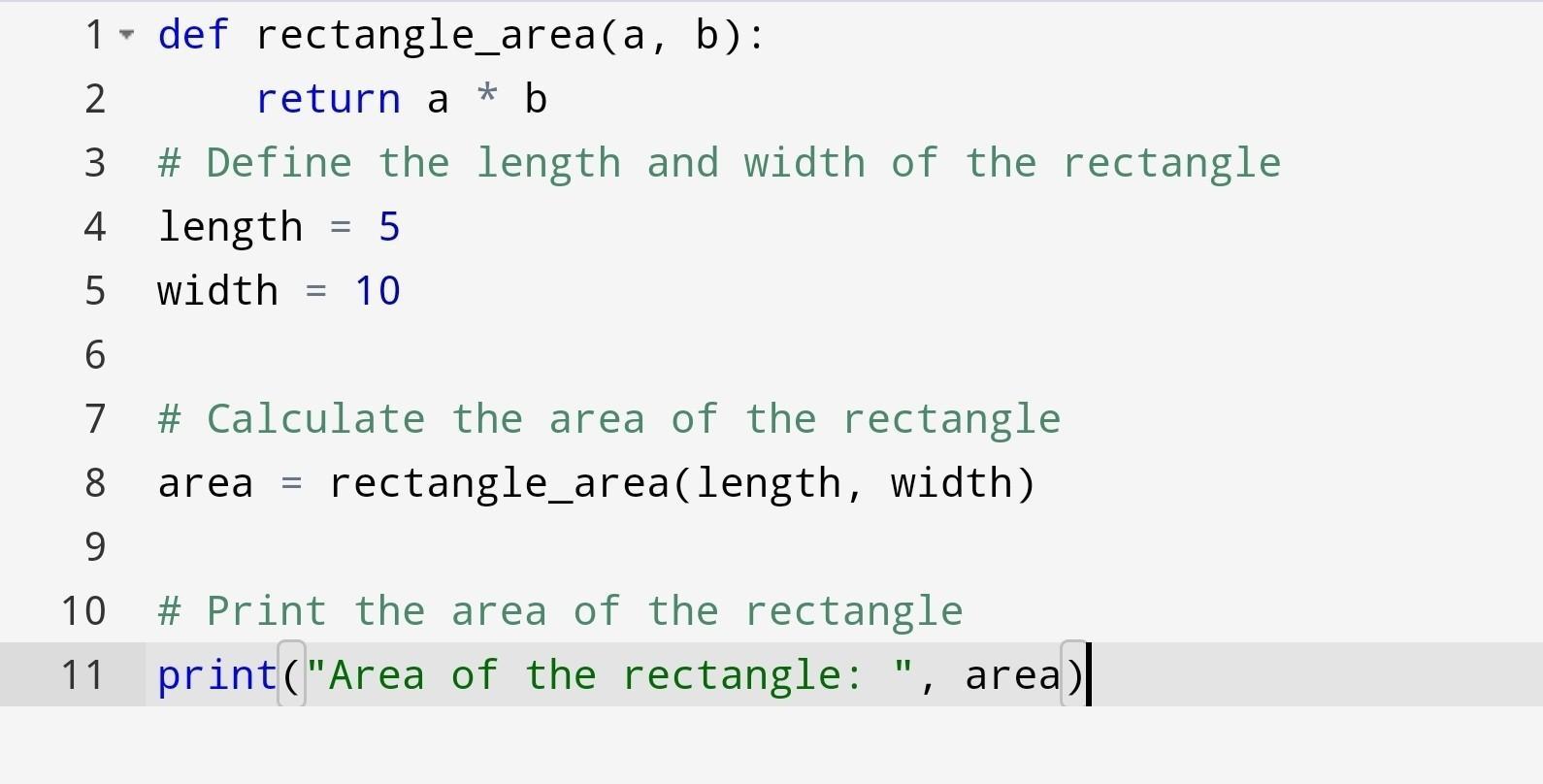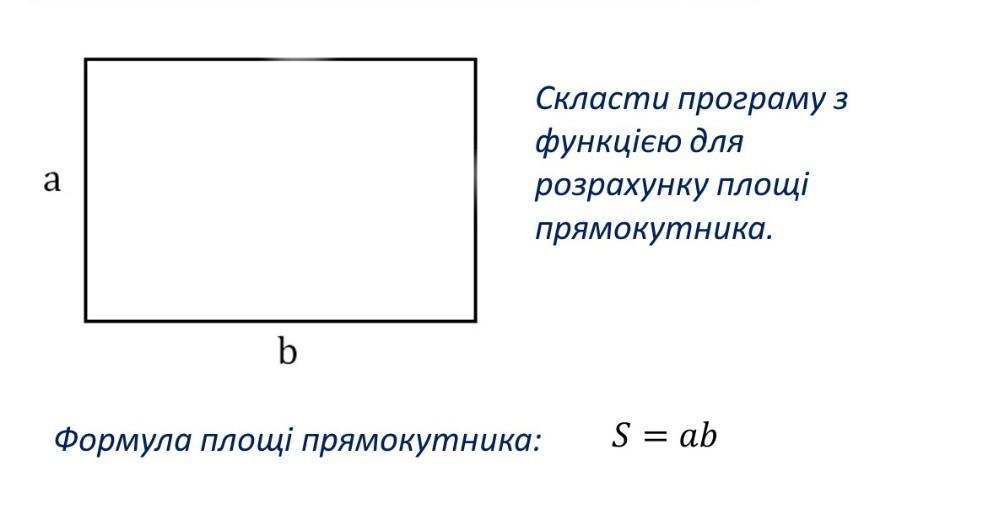 Python. Скласти програму з функцією для розрахунку площі прямокутника а і в . Формула прямокутника S=ab
