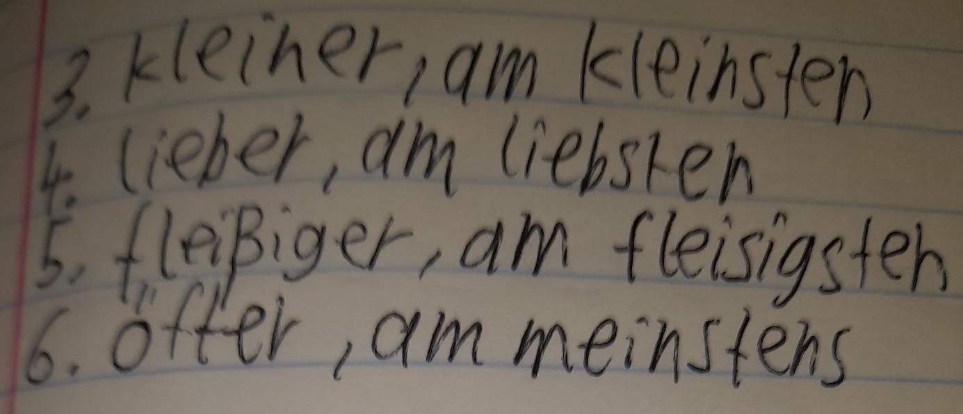 5. Ich lerne fleißig. Stefan lernt fleißiger als ich. Aber Sebastian lernt am Fleißigsten.
