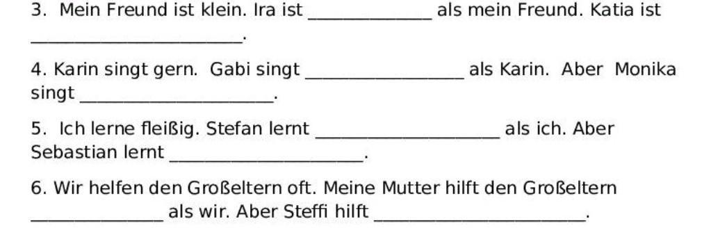 3. Mein freund ist klein. Ira ist kleiner als mein Freund. Katja ist am kleinsten.