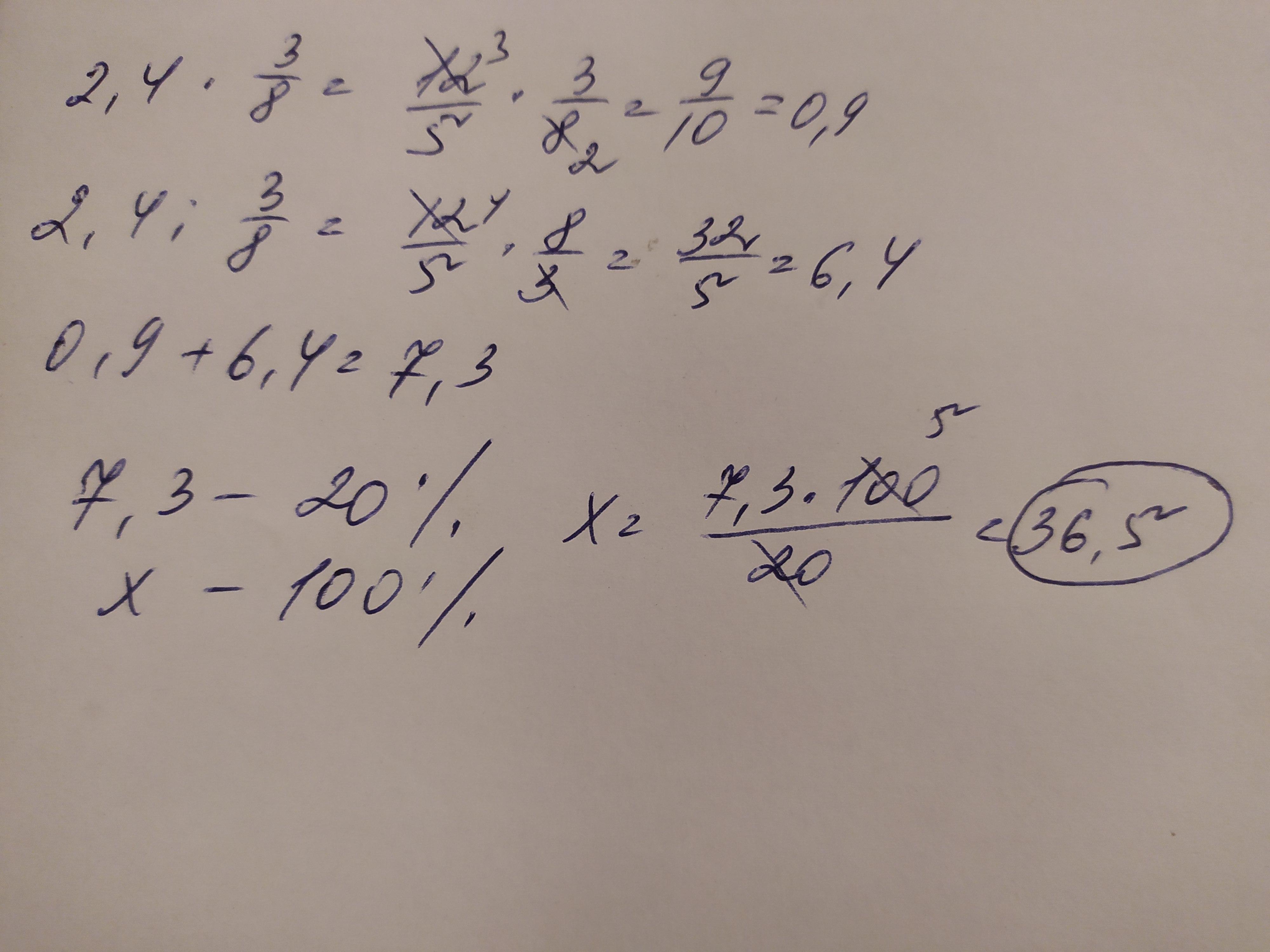 Знайдіть число, якщо значення виразу 2,4 * 3/8 + 2,4 : 3/8 становить 20 % від нього. очеень срочно даю 40 балов