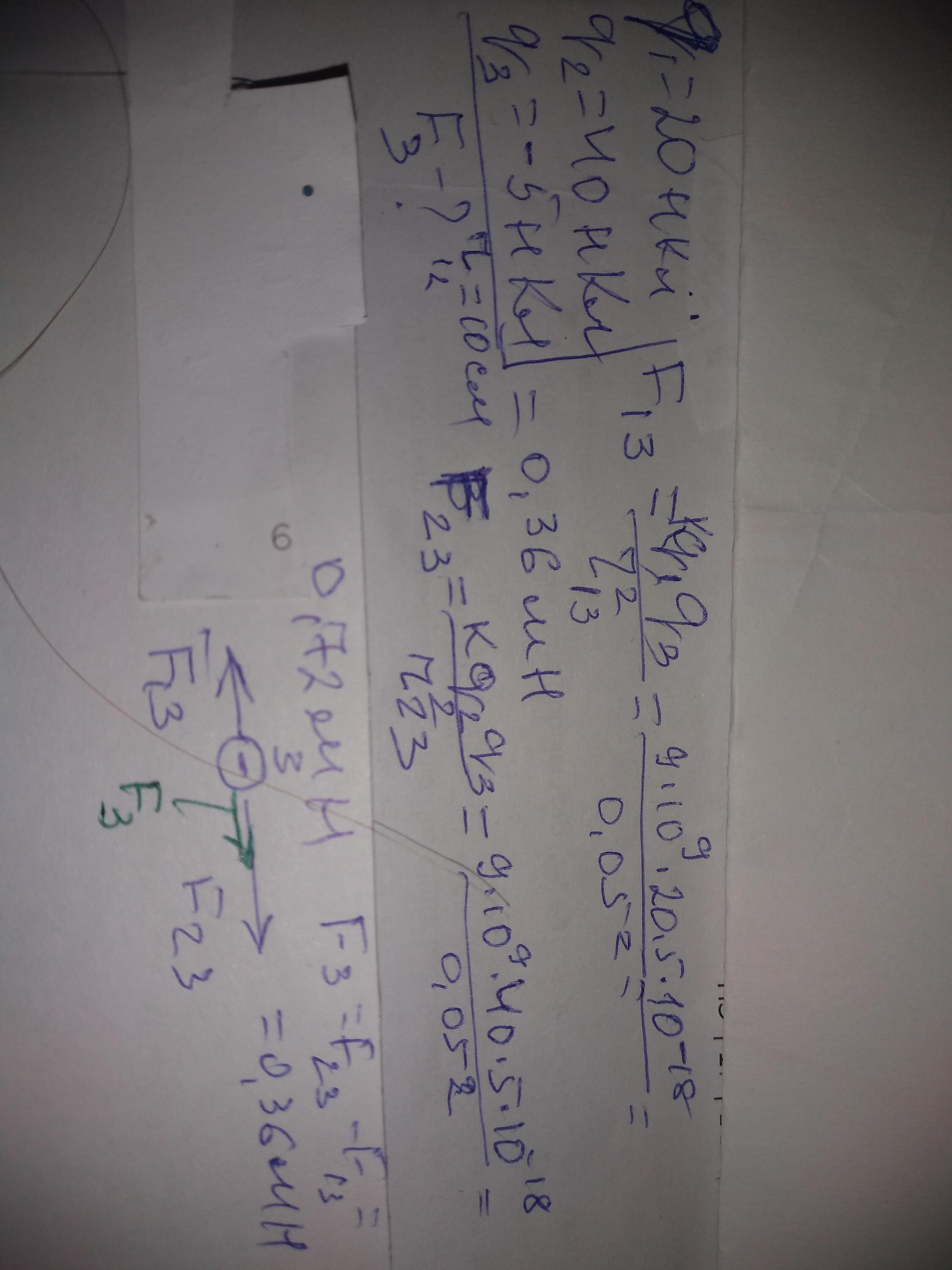 Точкові заряди 20 нКл i 40 нКл закріплені на відстані 10 см один від одного у вакуумі. Посередині між ними розміщують точковий заряд -5 нКл. Обчисліть модуль і напрям результуючої сили, яка діє на цей заряд.