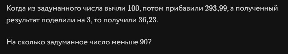 На сколько задуманное число меньше 90 ?