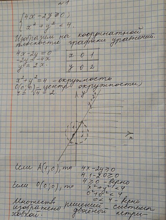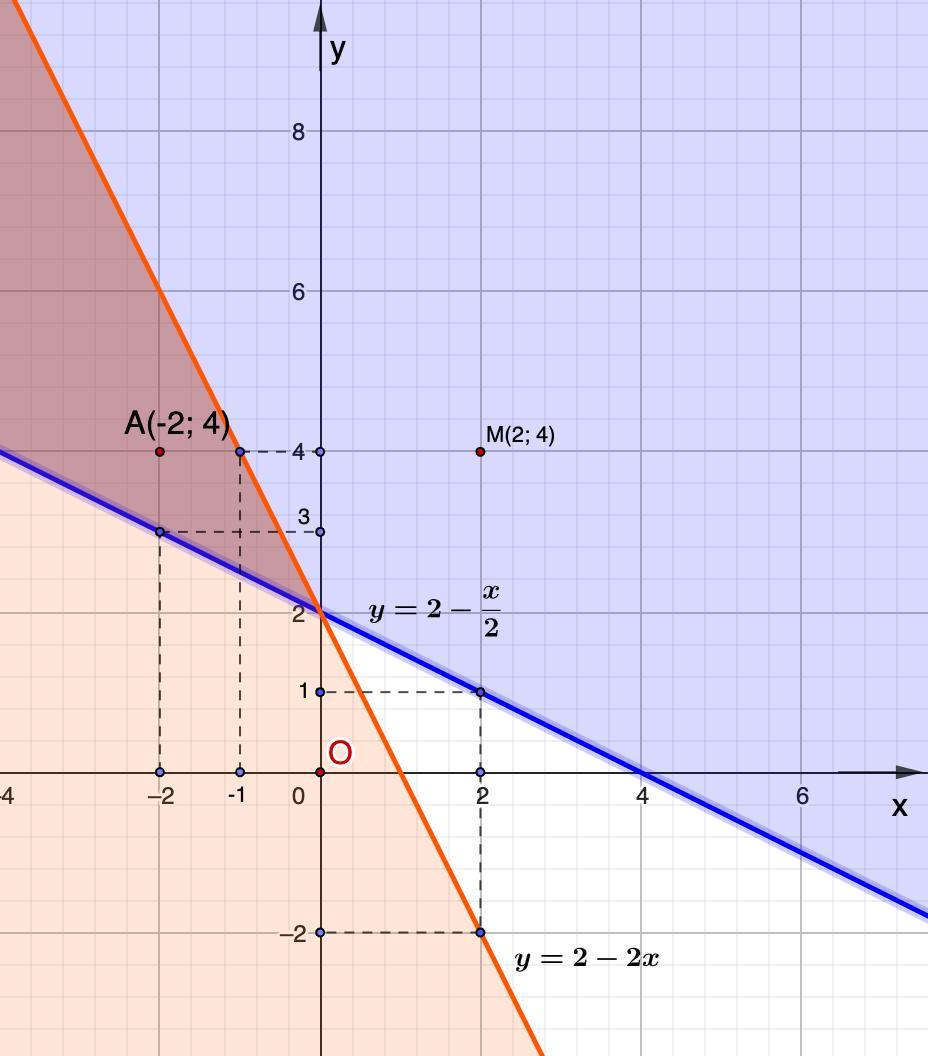 Выберем любую точку в закрашенной области, например, М(2; 4) и подставим ее координаты в неравенство: