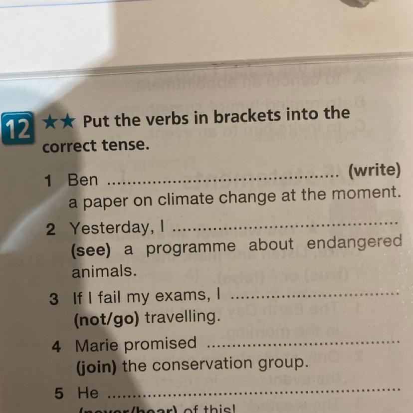 1 is writing 2 saw 3 won't go 4 to join 5 has never heard