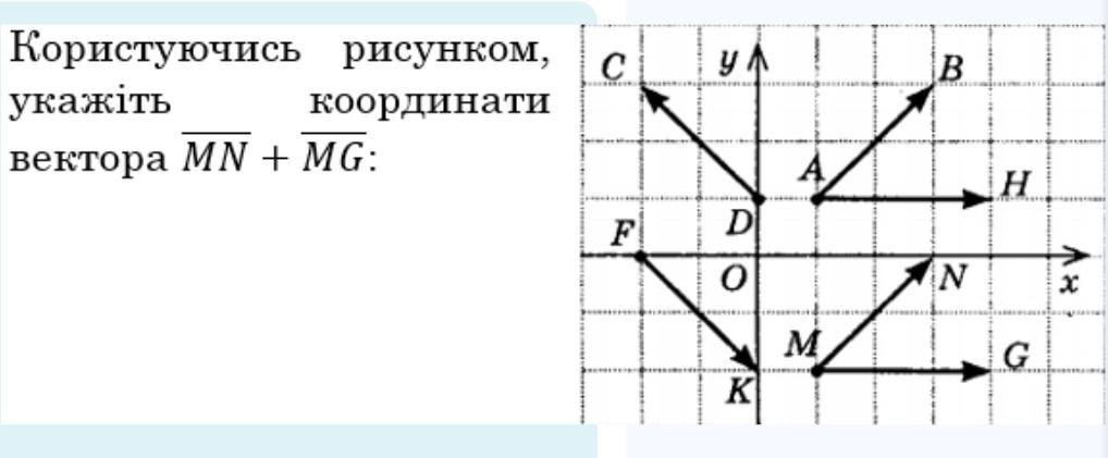 користуючись рисунком укажіть координати MN + MG