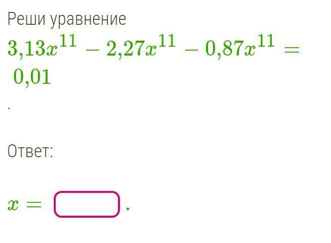 х^11*(3.13-2.27-0.87)=0.01 x^11*(-0.01)=0.01 x^11= 0.01:(-0.01) x^11= -1 x= -1