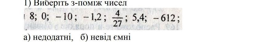1) Виберіть з-поміж чисел 18; 0; -10; -1,2; 12.45 27 а) недодатні, б) невід ємні ; 5,4; -612;
