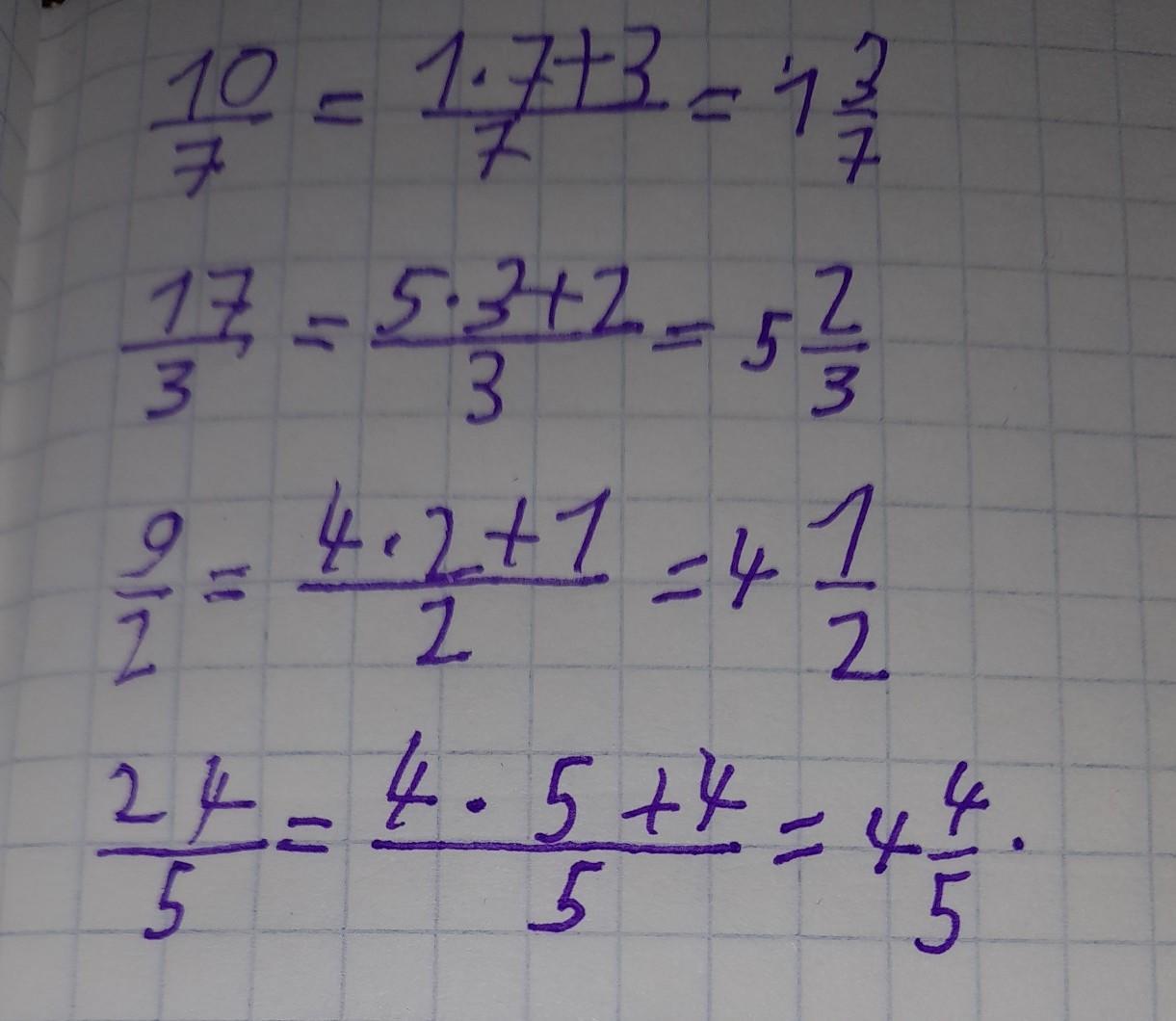 10/7 = 10 : 7 = 1 (ост 3)
