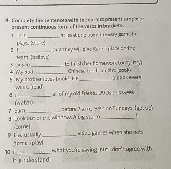 10. I understand what you're saying, but I don't agree with it. (P. Simple)