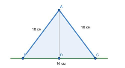 10 см і 16 см. Знайти проєкцію меншої сторони трикутника на пряму, якій належить його більша сторона.