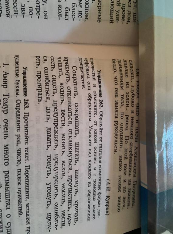 Ответ: Сокращая(от сокращать),шагая(от шагать),крича(от кричать),откликаясь(откликаться), прочищая(от прочищать)водив(водить) везя(везти),неся(носить) ,сидя(сидеть),предупреждавши(предупреждать),ошибаясь(ошибаться)да(дать),тонувши(тонуть),протирая(протирать)