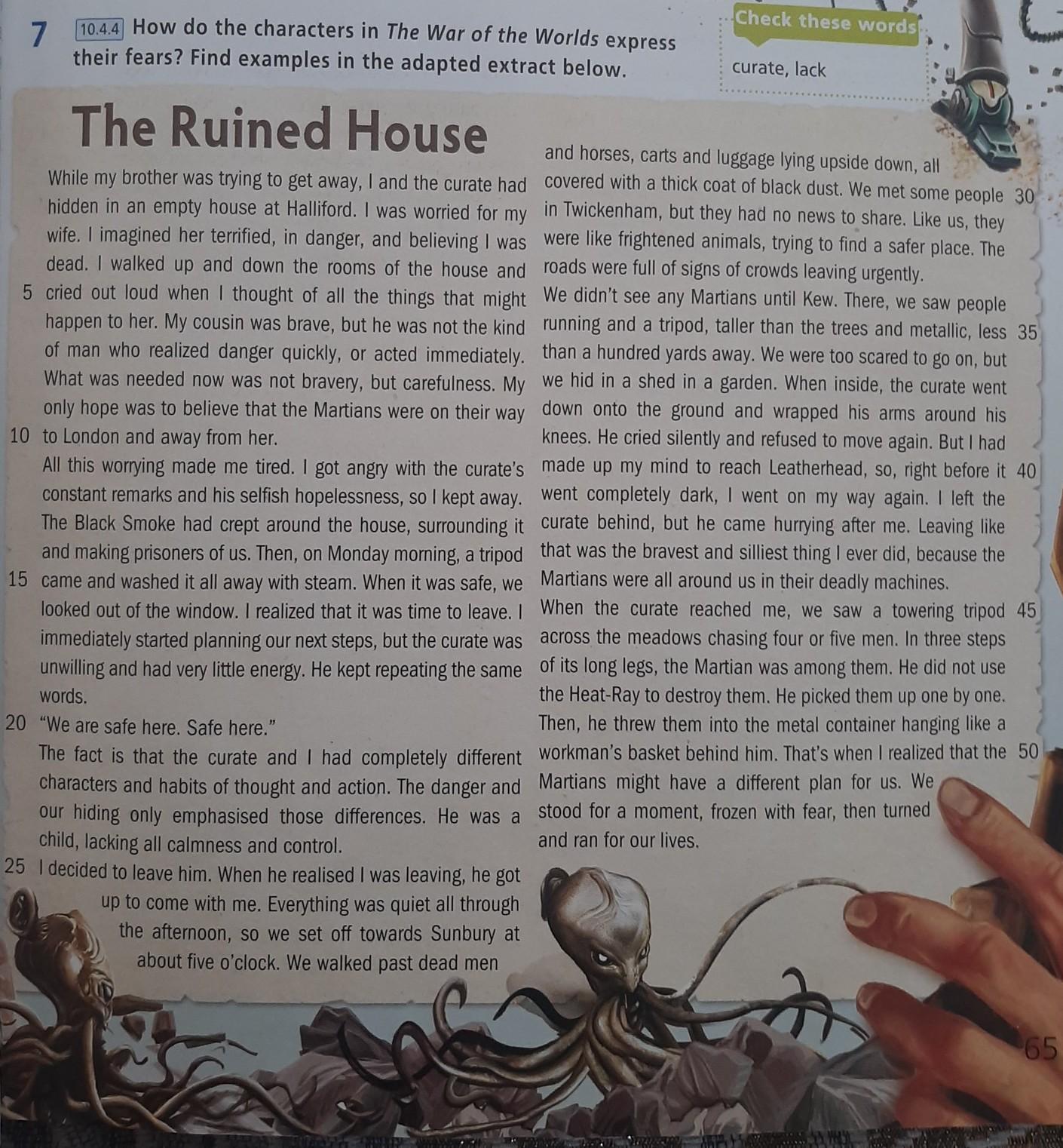 9 10.1.6 What are the tripods like? Read the extract in Ex. 7 again. List the words used by the author and describe a tripod to your partner.