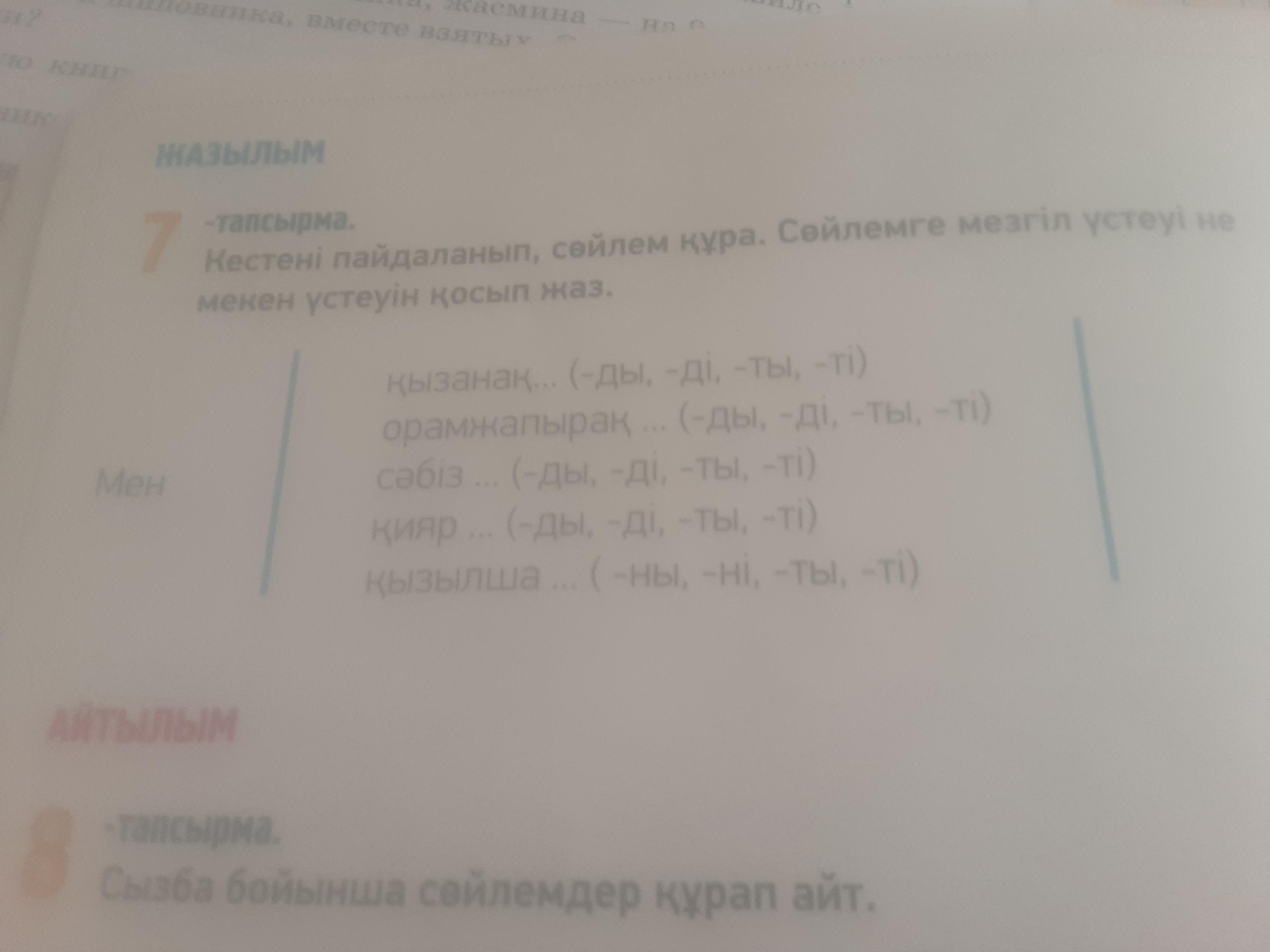 сөйлем:бүгін мен әжемнің бақшасына бардым онда қиярды,сәбізді,орамжапырақты,қызанақты,қызылшаны жинадық және олармен салат жасадық өте дәмді болды